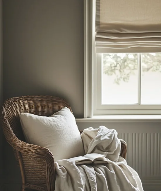 East-facing rooms glow with soft, morning light that cools by afternoon. To capture and enhance that early warmth, use light-reflective shades like Bleached Cream or Chinoiserie, which bring a fresh, sunny feel. As the day progresses, cooler accents like Celadon or Sea Foam maintain a gentle brightness. Pastel tones such as Soft Wisteria or Sweet Pea add softness and clarity, while mid-tone neutrals like Linwood or Ashen provide a grounding, timeless effect. Think about how your palette will evolve with the light to create balance and interest throughout the day.
