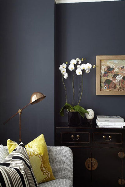 I tend to veer towards darker, moodier colours in inky blues, green greys and love how they can make a room feel inviting and calm. These colours also create a great background for artwork.