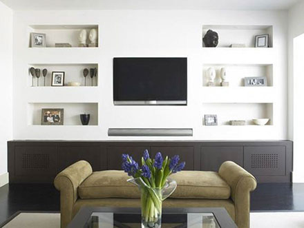 The pictures below are from a development we finished for a client 20 years ago. It still looks good, note the small TV with a B&O speaker…
