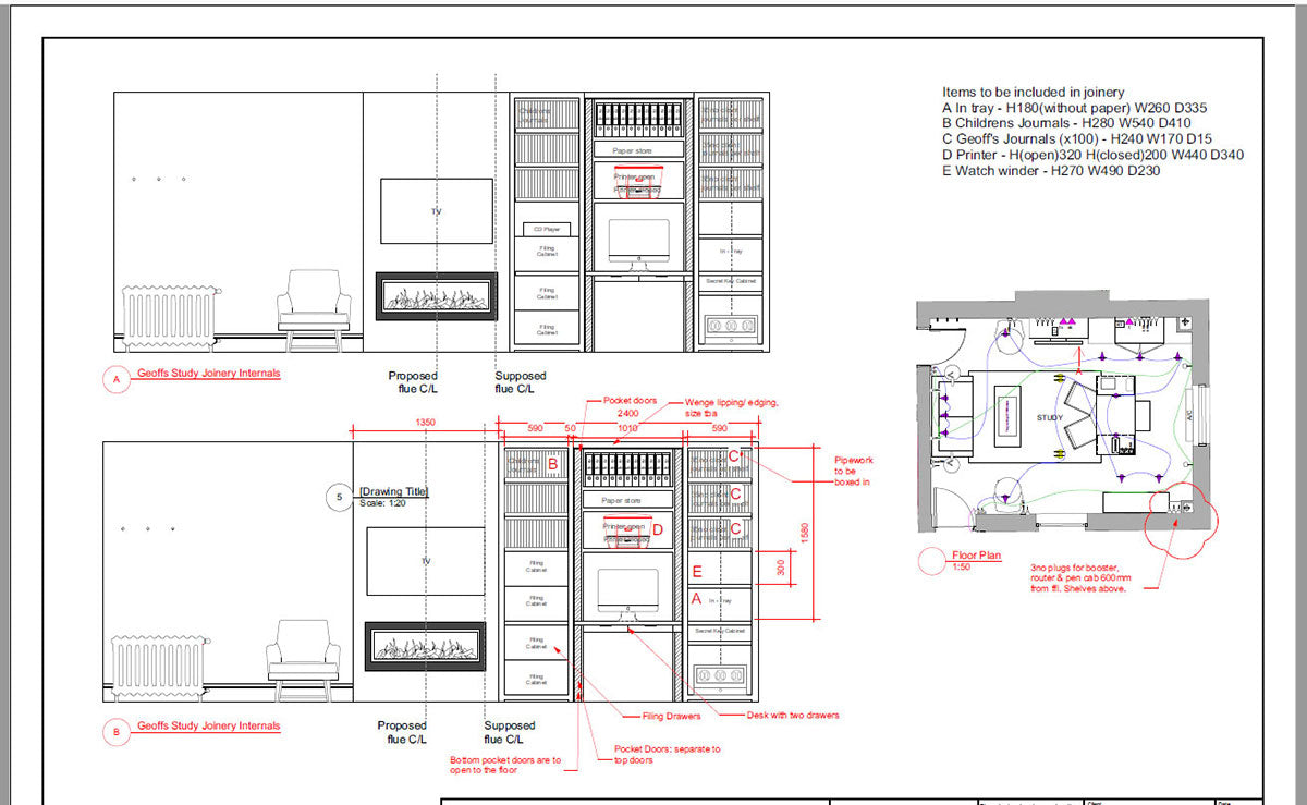 Occasionally we do have a very tricky space to deal with, this often gets resolved by Gemma and I sitting down, pencils in hand and drawing our own take on the problem to see what we come up with. This invariably works brilliantly with us merging ideas, refining the design until we are happy and then getting the rest of the team to cast their eye over it.