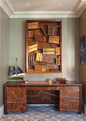 I find inspiration from so many sources – from visiting museums, theatres, galleries, and my extensive library. I am also inspired by my clients, many of whom are shaping the world we live in. I love pushing the boundaries of design and the materials we use. Researching and finding a new technique for doing something traditional is very exciting.